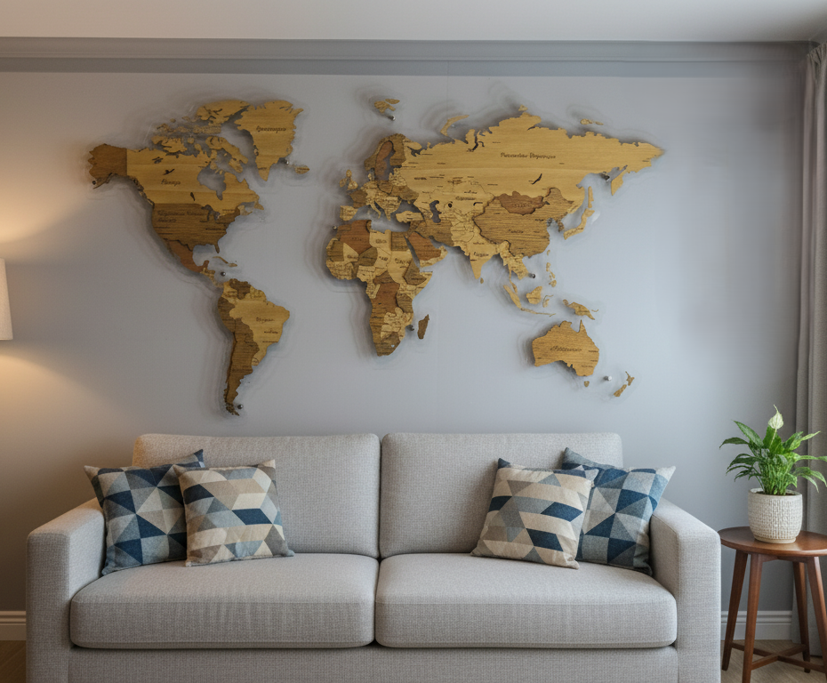 Почему бы не установить деревянную 3D карту мира, которая станет настоящей изюминкой вашего офиса или шоурума?